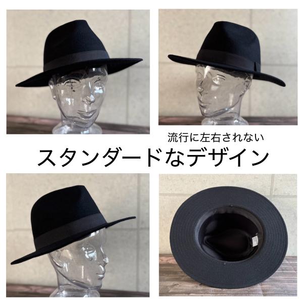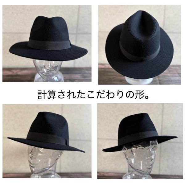 上質なウール素材のつば広ハット。