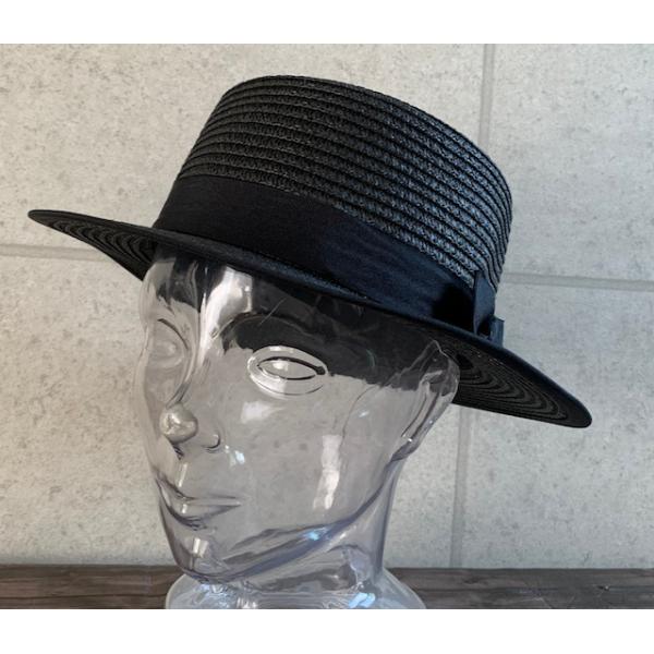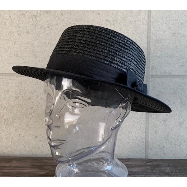 パイピングを施したカンカン帽。
