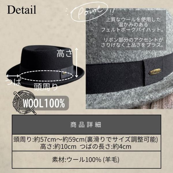 【最短当日発送】 2色展開 帽子 ウール ポークパイ ハット フェルト テラピンチ ウール100% サイズ調整 プレート付 男女兼用 サイズ調整 【複数ご購入送料無料】
