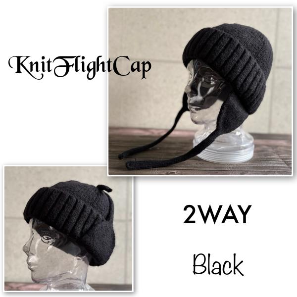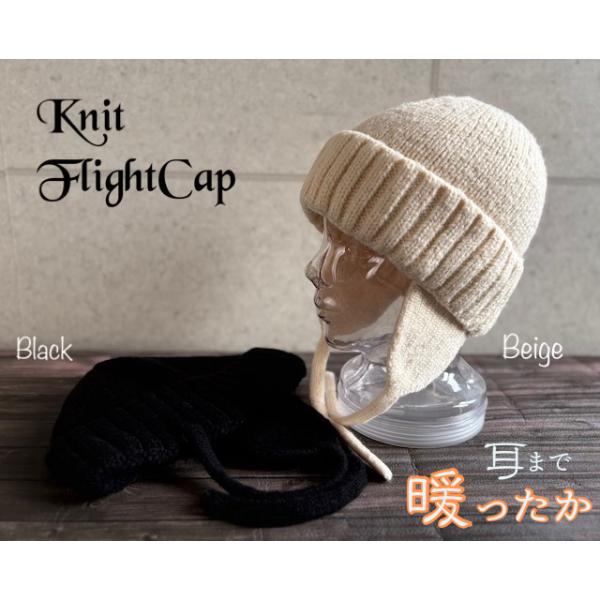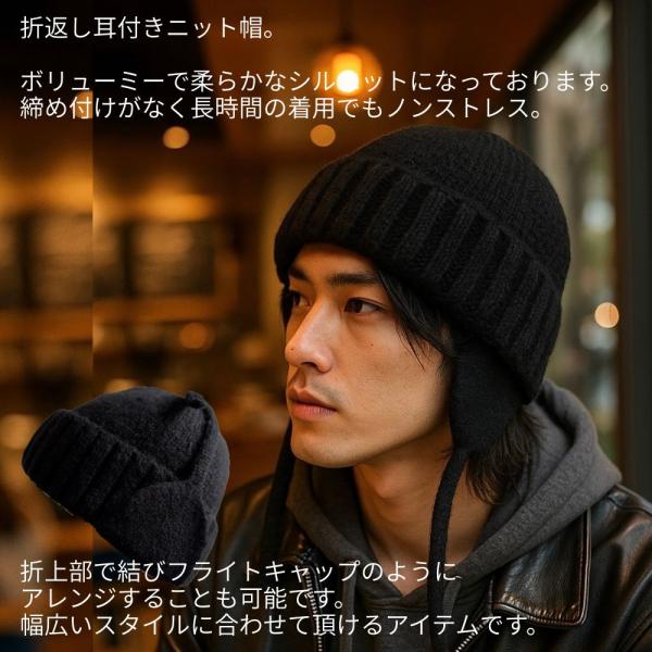 【最短当日発送】 2色展開 帽子 ニット帽 折り返し 耳付き ニット フライトキャップ イヤーフラップ 防寒 耳当て リブ 伸縮性 秋冬 男女 【複数ご購入送料無料】