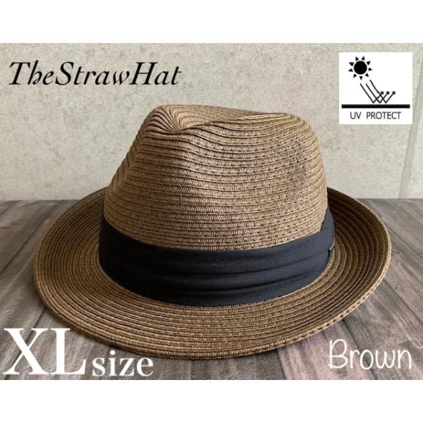 【最短当日発送】 帽子 大きい BIG XL サイズ つば広 ストロー ハット フェドラ 3段帯 中折れ サイズ調整 春夏 メンズ レディース 男女 【複数ご購入送料無料】