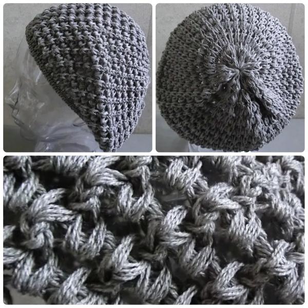 春夏らしく麻を使ったオシャレなニット素材のベレー帽です。