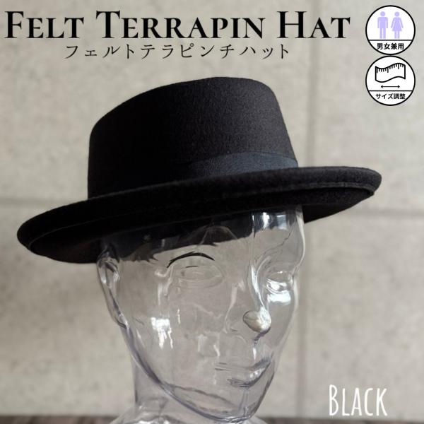 【最短当日発送】 特価 帽子 フェルト ポークパイ ハット テラピンチ カンカン帽 ポリフェルト クラシカル 男女兼用 サイズ調整 秋冬 【複数ご購入送料無料】
