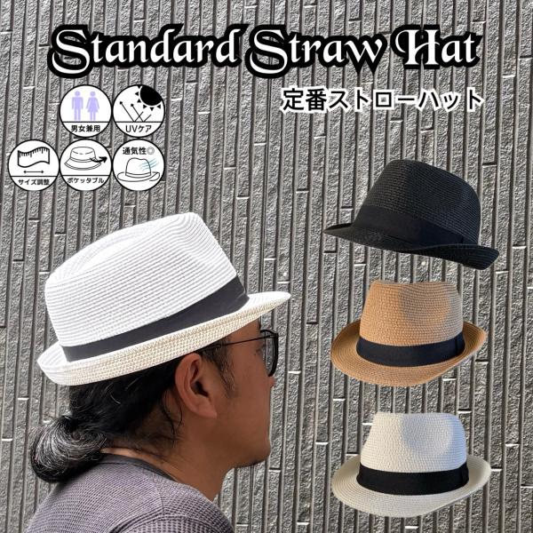 【最短当日発送】 3色展開 帽子 ストロー ハット 中折れ ブレード 春 夏 定番 スタンダード 男女兼用 折りたためる サイズ調整 日よけ 【複数ご購入送料無料】