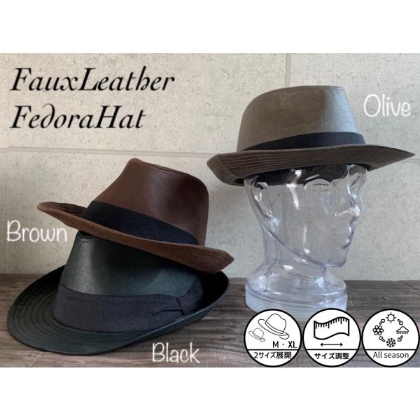 2サイズ展開 帽子 レザー 中折れ ハット エコ シンプル クラック シンプル 中折れハット 男女兼用 M BIG 大きい サイズ 【店内商品2点以上ご購入で送料無料】