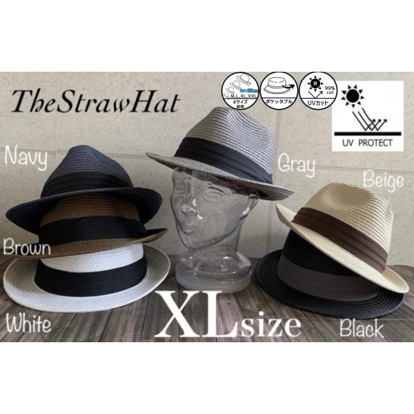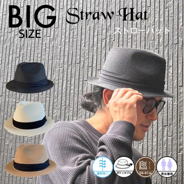 【最短当日発送】 帽子 大きい BIG XL サイズ つば広 ストロー ハット フェドラ 3段帯 中折れ サイズ調整 春夏 メンズ レディース 男女 【複数ご購入送料無料】