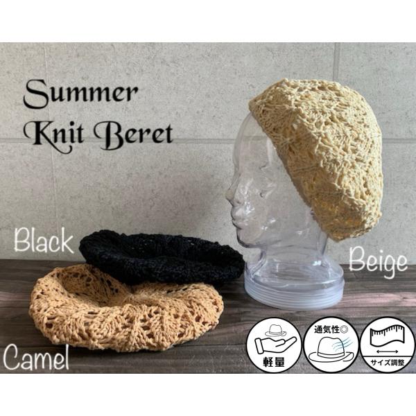 【最短当日発送】 3色展開 帽子 サマー ニット ベレー帽 模様編み ベレー サイズ調整 ニットベレー 春夏 メンズ レディース 男女兼用 綿 【複数ご購入送料無料】