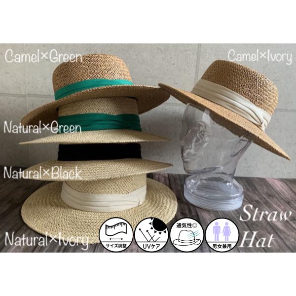 2色展開 帽子 カンカン帽 麦わら ストローハット 幅広 リボン 天然素材 春 夏 ストロー ハット 定番 サイズ調整 日よけ 【店内商品2点以上ご購入で送料無料】