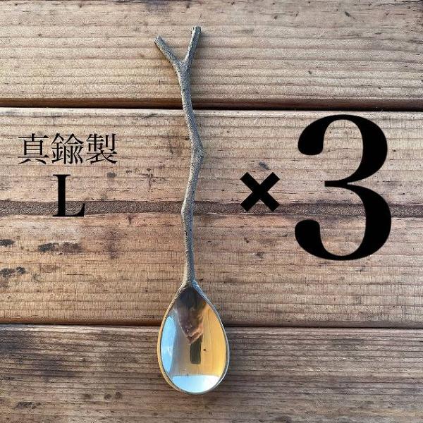 【 送料無料 】 真鍮 (しんちゅう) 枝 スプーン Lサイズ 3点セット 真鍮製 ブラス カトラリー アウトドア ゴールド アンティーク 小枝
