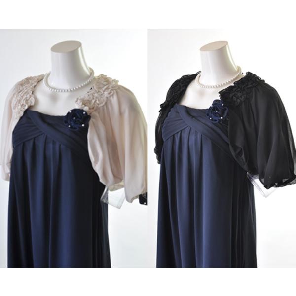 M L LL 二の腕カバー 五分袖 フリルボレロ 黒 ベージュ&シフォン ロングドレス茄子紺 コサージュ付 214(am8s/b2fD)&301(am10U)