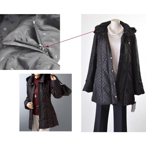 エンボス加工のドット柄がキュート。身頃のキルティングが美しく、ダウンコートにありがちなモコモコ感はありません。