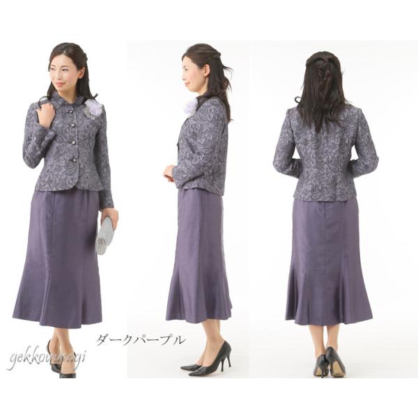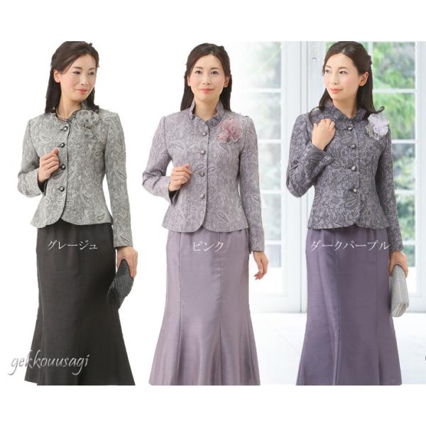 ミセス フォーマルスーツ コサージュ付 レディース セレモニー フォーマル 40代 50代 60代 70代 80代 母親 祖母 結婚式 記念日 シャンタン ロングスカート 822