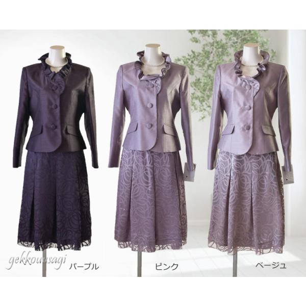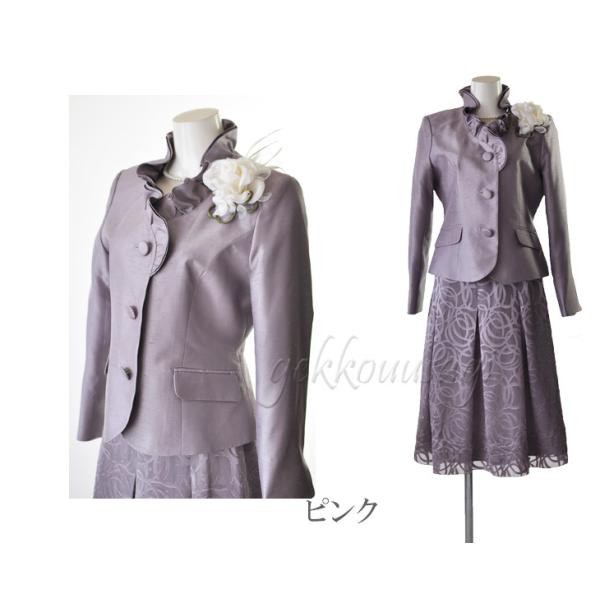 カラーフォーマルスーツ 9号 11号 13号 上品 光沢感 シャンタンスーツ 結婚式 入学式 卒業式 七五三 お宮参り ママ スーツ 30代 40代 50代 60代 70代 5835