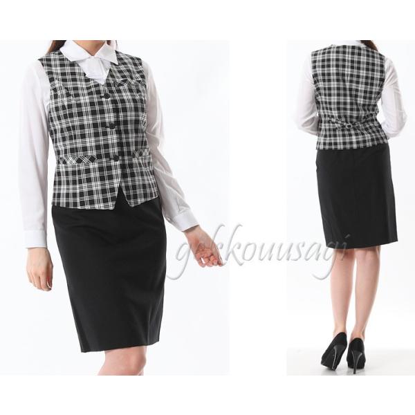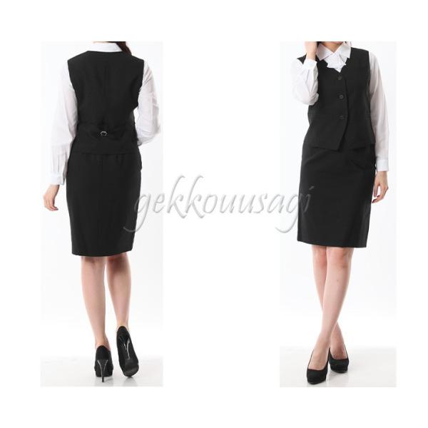 ベストスーツ 事務服 OL 制服 洗える 2点セット アジャスター付 選べるスカート丈 ベスト スカート タイトスカート ボックススカート 106-110