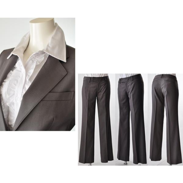 レディース ビジネススーツ 7号 小さいサイズ 就活 オフィス 会社 仕事 リクルートスーツ 着回し 2ボトム 3点スーツ テーラードジャケット モカ 517