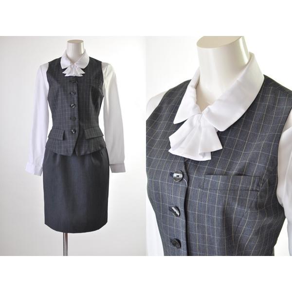 事務服 制服 洗える 日本製 事務服 制服 半袖オーバーブラウス ベスト+スカート事務用制服 ベストスーツ ホームウォッシャブル