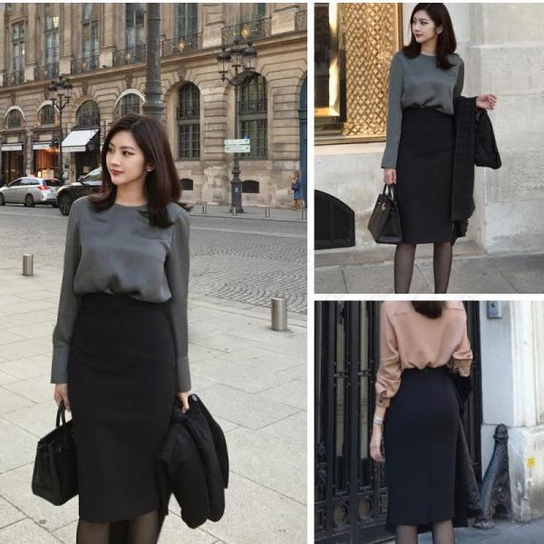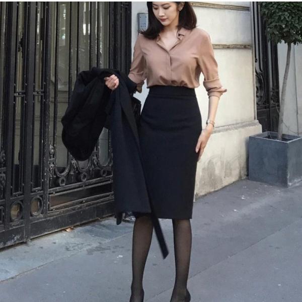 タイトスカート21年春新作ペンシルスカートレディース膝丈/膝下無地ボトムスハイウエストフォーマル美脚通勤ビジネス仕事