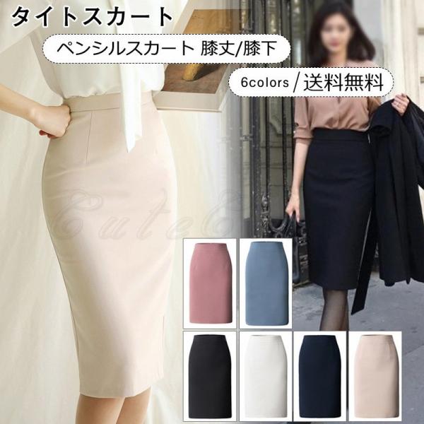 タイトスカート21年春新作ペンシルスカートレディース膝丈/膝下無地ボトムスハイウエストフォーマル美脚通勤ビジネス仕事