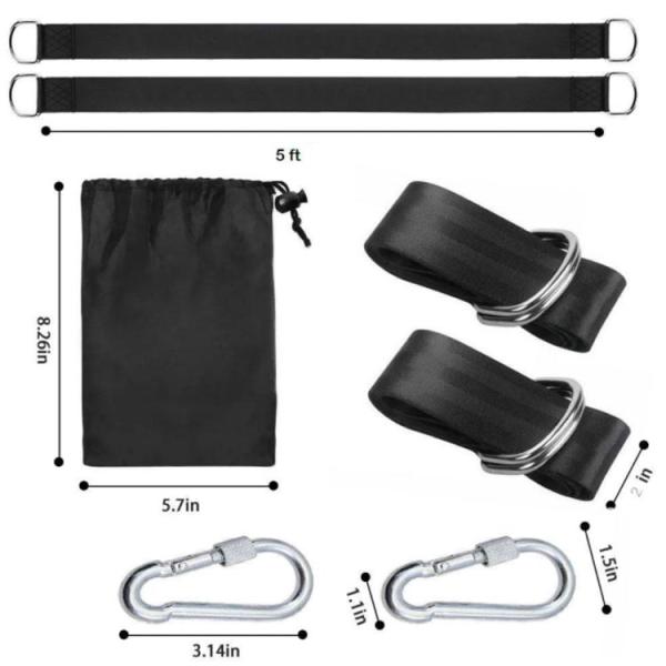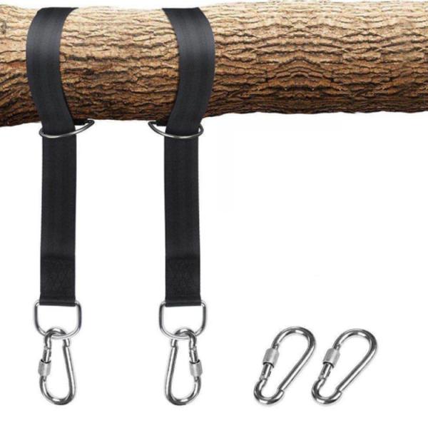 ハンモック固定用ベルト ブランコ用ベルト 吊り下げベルト ハンモックベルト キャンプ 簡単設置 カラビナ2個 ブラック ツリーストラップ ロープ 耐摩