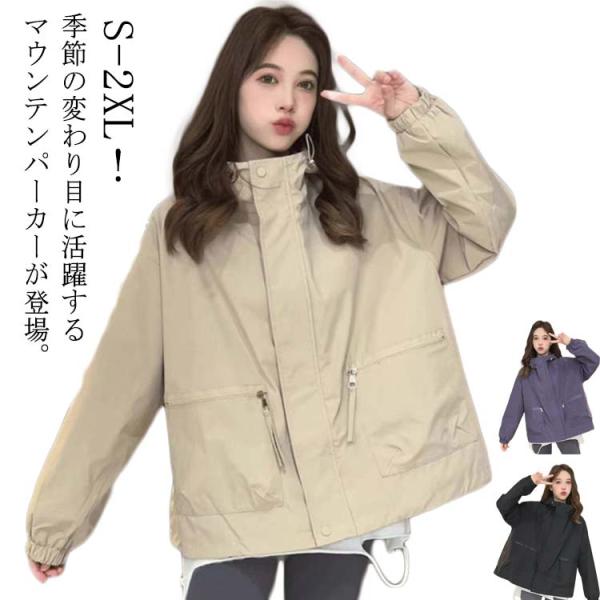 マウンテンパーカー レディース ジャケット 春 秋 アウター ウインドブレーカー フード付き ブルゾン ライトアウター 長袖 防水 パーカー 軽量 通