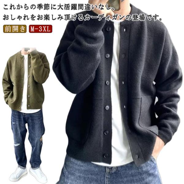 カーディガン 春秋 長袖 メンズ おしゃれ ニット セーター 前開き 父の日 大きいサイズ 無地 男性 柔らかい カーディガン 羽織 ビジネス カジ