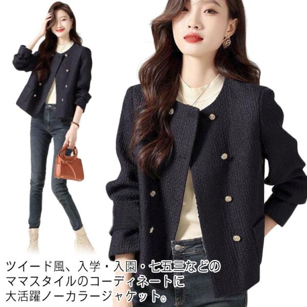 ツイード ジャケット ノーカラー フォーマル レディース ショート丈 春 秋 ノーカラージャケット セレモニー 入学式 卒業式 結婚式 30代 40代