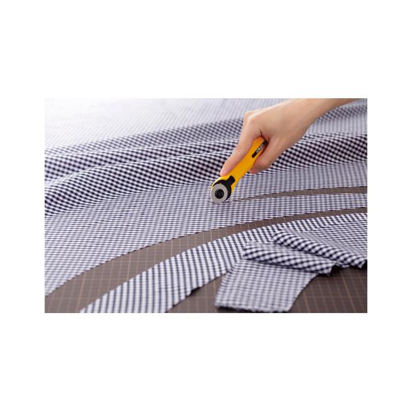 小回りのきく直径28mm円形刃を装着したロータリーカッター。