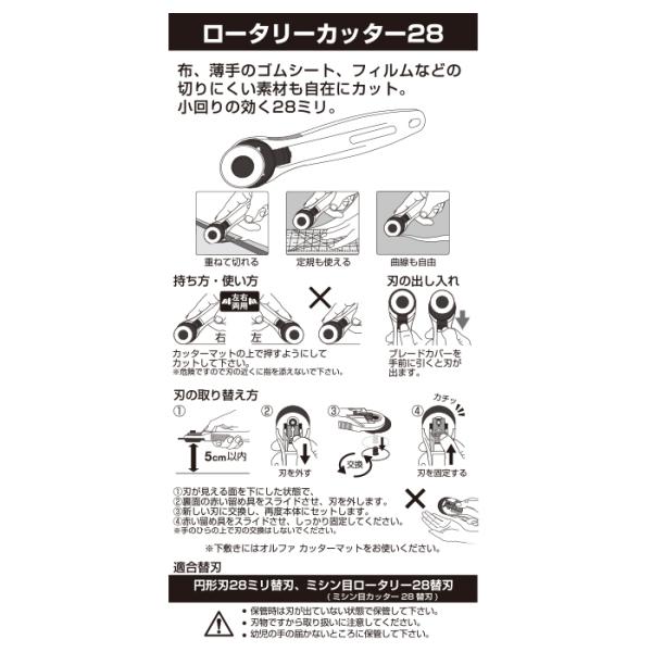適合替刃:ミシン目カッター28替刃、円形刃28ミリ替刃
