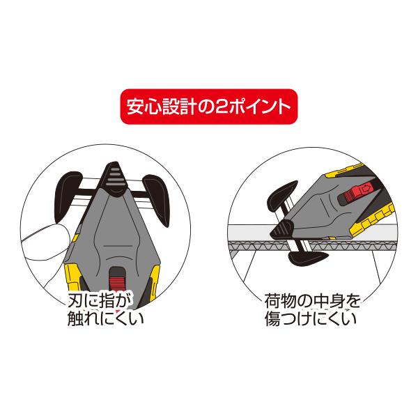 刃に手指が触れにくく、荷物の中身を傷つけにくい安心設計です。