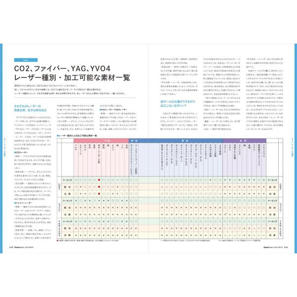 レーザー加工の基本的な知識から安全な使用方法、レーザーで様々な素材を加工した結果、レーザーを使った商品づくりのノウハウ、最新レーザー加工機やレーザー加工用商材、オリジナルグッズ作りをする上で知っておきたい法制度まで、レーザーユーザーはもちろん、これからレーザーを導入する人に一度は読んでもらいたい、レーザー加工の教科書です。