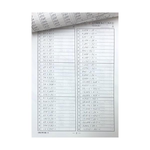 わり暗算30問中