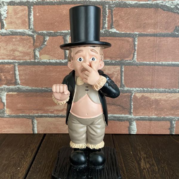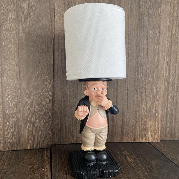 予備のトイレットペーパーをおしゃれに飾る老人紳士の置物