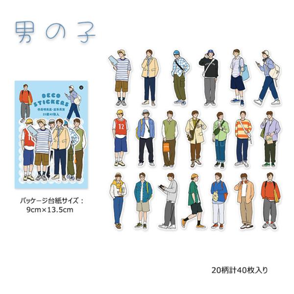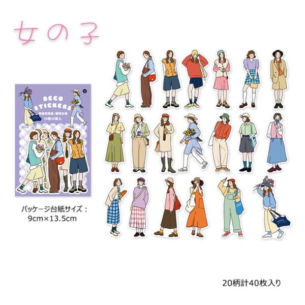 シール 女の子 男の子 少女 ガール おしゃれ かわいい コーディネート シリーズ 40枚入り