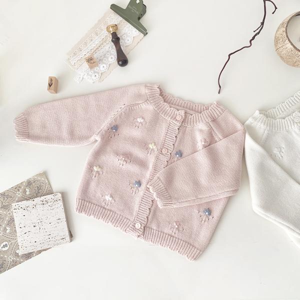 ニット カーディガン ニット フラワー 秋 秋冬 冬 女の子 前びらき 前開き ハート ベビー 赤ちゃんラウンドネックカーディガン ニットカーディガン 子供服 キッズ 子ども かわいい おしゃれ あったか ホワイト ピンク 海外 韓国 73cm 80cm 90cm 100cm 110cm 海外子供服 韓国子供服 海外子ども服 羽織り お出かけ おすすめ ギフト