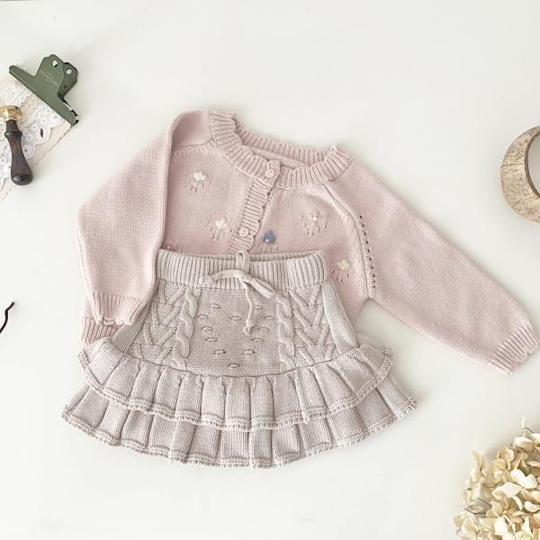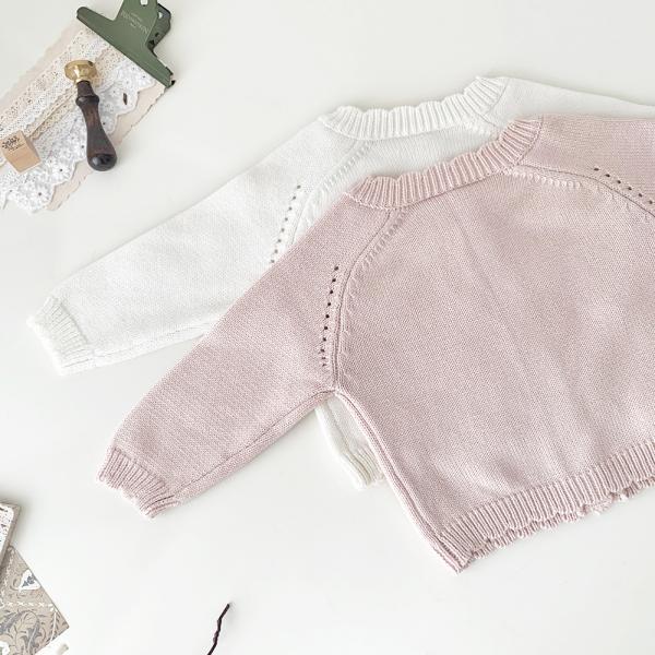 ベビー服 襟付きフリル 透かしニットカーディガン 長袖 ケーブル編み 丸首 ニット ベビー 赤ちゃん 赤ちゃん服