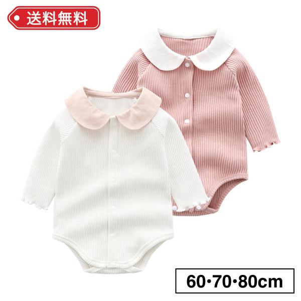 ロンパース 女の子 60 70 80 リブ ベビー服 長袖 えり付き 赤ちゃん おしゃれ かわいい ピンク 白 韓国 海外