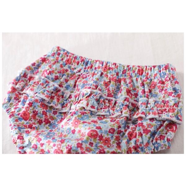 花柄がかわいいベビーのワンピースとパンツ(おむつカバー)の2点セットです。