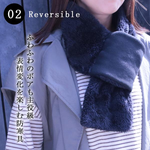 差し込むだけで巻けるインサートミニマフラーです。風や動きで乱れることなく、冷たい風をシャットアウト。首元をしっかり保温してくれます。折りたたみが簡単なので、すぐにバッグにしまえ、通勤通学にも便利。リバーシブル仕様で、無地ながらも素材の表情変化に富み、ビジネスシーン、制服、アウトドア、カジュアルウェア、ルームウェアなど幅広いシーン、様々なコーデにマッチします。マフラーなので、ヘアやメイクの乱れを気にせず、しっかりと防寒対策ができます。ユニセックスで使用できるので、クリスマスプレゼントやギフトにもオススメ!