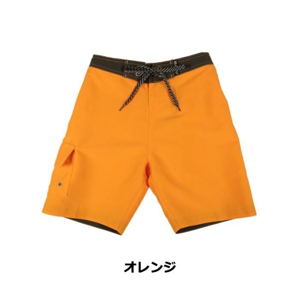 ボードショーツタイプでウエストの後ろだけゴムが入ったタイプです。両サイドにポケットがあり、左サイドはジッパー付きです。