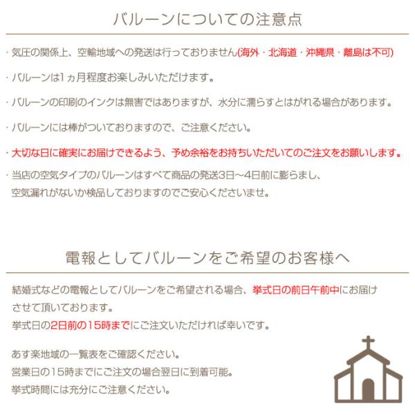 ・バルーンの印刷のインクは体に無害ですが なめたり、水に濡らすと印刷面がはがれ落ちる 可能性があります。