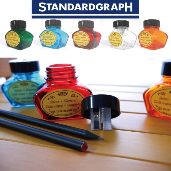 ドイツ製インク瓶型鉛筆削り 窓辺に置いて透けて綺麗なガラスシャープナー DUX 実用的インテリア雑貨