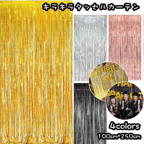 タッセルカーテン キラキラ 2セット 背景 卒業式 誕生日 フリンジカーテン パーティー 飾り付け バースデー Happy Birthday パーティー 装飾 結婚式