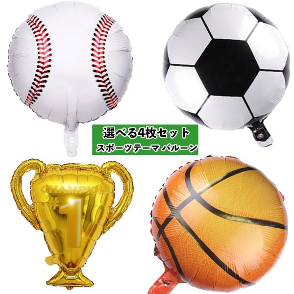 誕生日 バルーン 飾り付け スポーツテーマバルーン 4枚 自由選択可能 #1チャンピオン サッカーボール バルーン 野球ボール バスケットボール