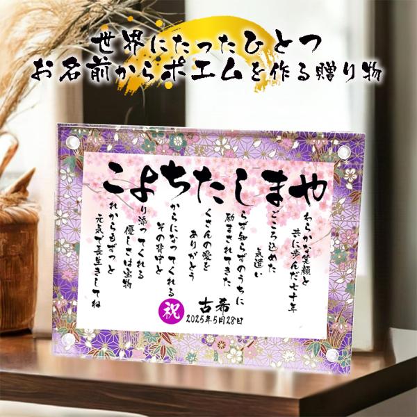 古希祝い 【フルネーム、お二人用】お祝いポエム 古希プレゼント 喜寿 卒寿 名前ギフト詩 筆文字 お名前ポエム 名前詩の事前確認あり 名入れ ネームポエム