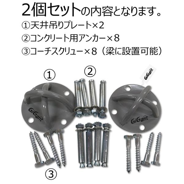 耐重量250kg 天井金具 フック 2個 壁 マウントキット ハンモック チューブトレーニング ハンキングチェアー エアリアルヨガ ヨガハンモック