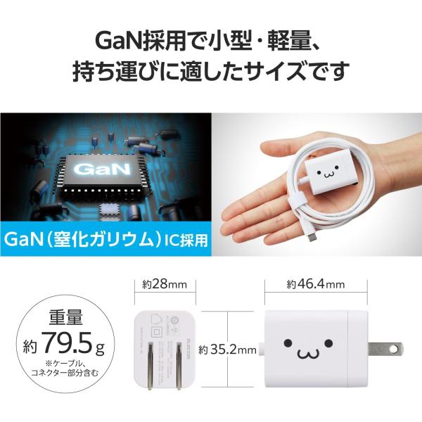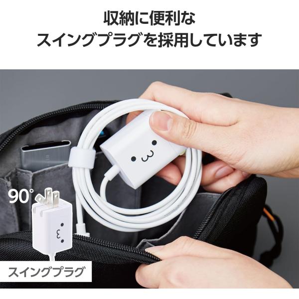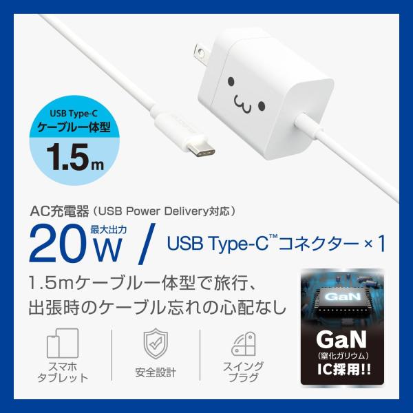 エレコム 充電器 Type-C ケーブル一体型 1.5m USB PD対応 20W PSE認証品 GaN採用 折りたたみ式プラグ しろちゃん MPA-ACCP6920WF