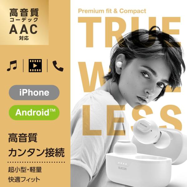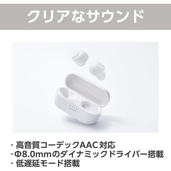 エレコム ワイヤレス イヤホン bluetooth AAC対応 Bluetooth5.3 連続再生5時間 低遅延 ホワイト LBT-TWS16WH