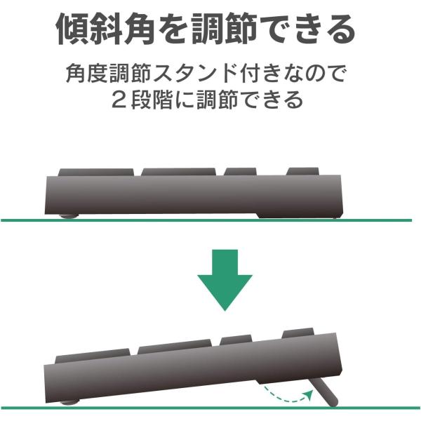 ●傾斜角を2段階調整できる角度調整スタンド付。