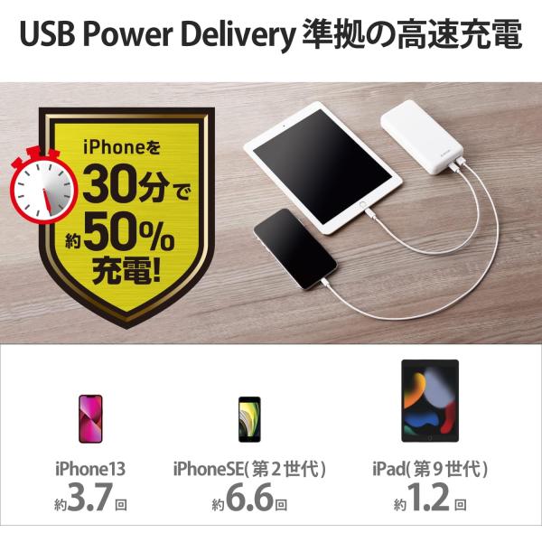 モバイルバッテリー エレコム 20000mAh 大容量 ( USB PD対応 ) 20W Type-C×1 USB-A×1 ホワイト DE-C34-20000WH