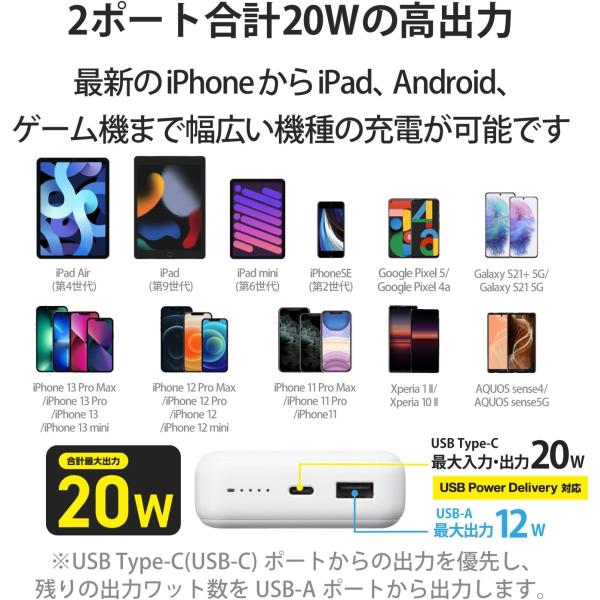 ●20W出力可能で対応機器を超高速充電できる20000mAhモバイルバッテリーです。